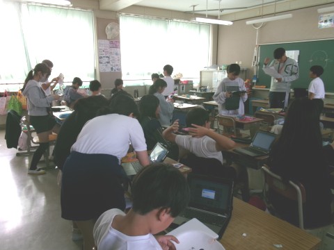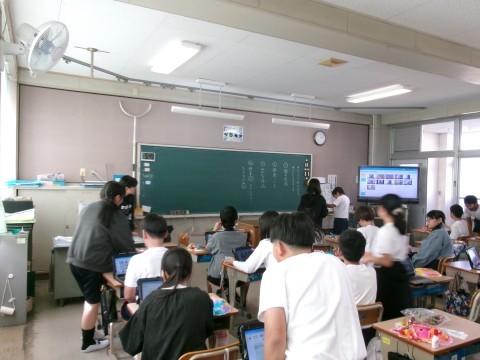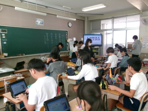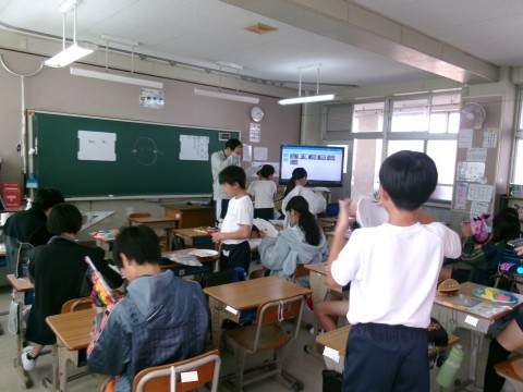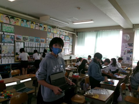 どちらのクラスも,これまで作ってきたお面がいよいよ完成しました。自分のお面をタブレットで撮影し,その写真の横に頑張った所や工夫した所を記入していました。
