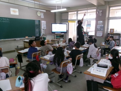 「学校を火事から守るためにどんなことをしているのだろう」というめあてで学習を進めていました。学校の中にある防火扉などの施設や火災報知器などの装置などの写真を見せながら,学校のどこにあるか確かめていました。次回の授業では,実際に校内を歩いて,どこに何があるかを調べていく予定です。