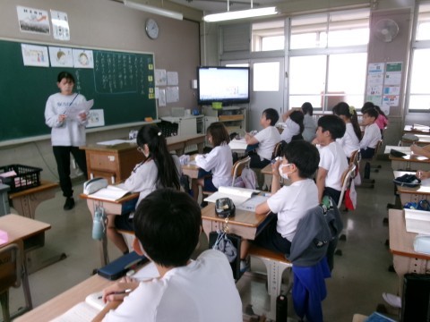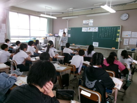 「友のしょうぞう画」という教材を使って学習を進めていました。内容は,主人公と手紙のやり取りをしていた友だちが,病気で長期入院することになり,返事が来なくなります。それを知らずにいた主人公が,偶然絵画展で自分のことを描いてくれた友だちの絵と,手に力が入りにくいという解説を見て,手紙が来なくなった理由を知り,涙を流すというものです。その涙はどんな涙なのかを考え,ワークシートに思いを書いていました。