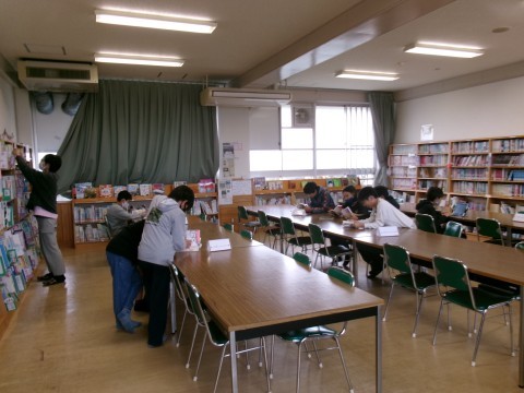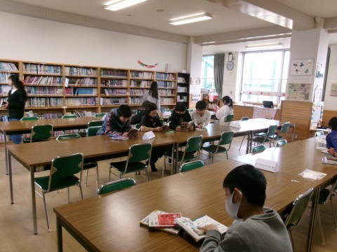 図書の時間の様子です。6年生も,図書の時間には集中して本を読んだり自分の読みたい本を探したりしています。