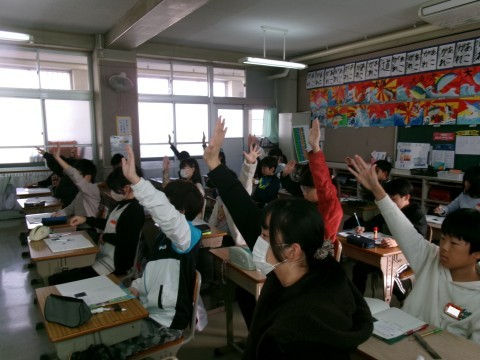 「時間を求める方法を考えよう」というめあてで学習を進めていました。「台風が時速25kmで進んでいて,400km進むには何時間かかるか?」という問題を考えていました。「速さ」「距離」「時間」の関係は,慣れるまでは少し難しいですが,一度理解すれば解けるようになります。(「み<みちのり>・は<はやさ>・じ<じかん>」の関係)