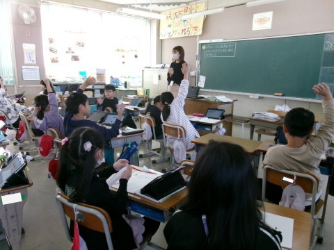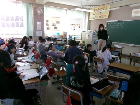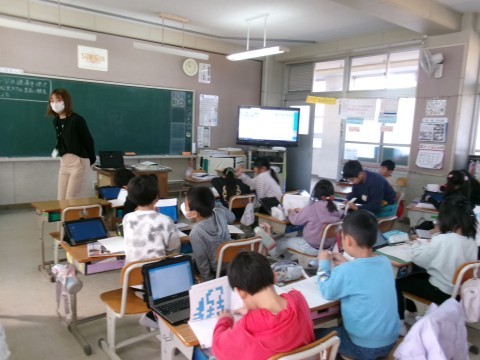 「(教科書の後ろのページにある)道具を使って,いろいろな大きさのまるい形をかきましょう」というめあてで学習を進めていました。