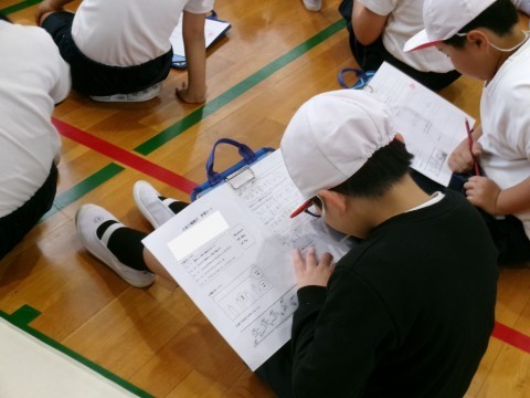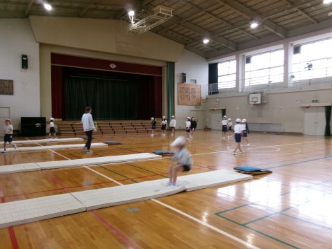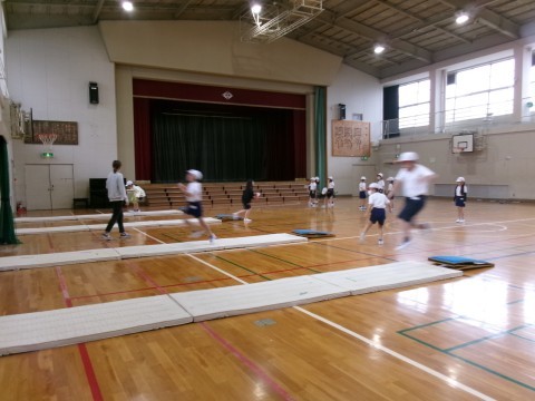 今日は体育館で走り幅跳びの練習です。