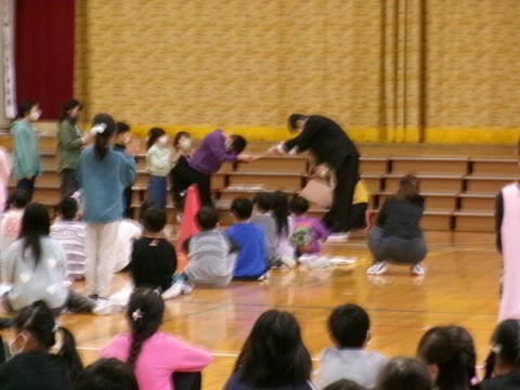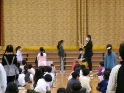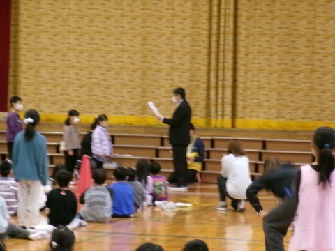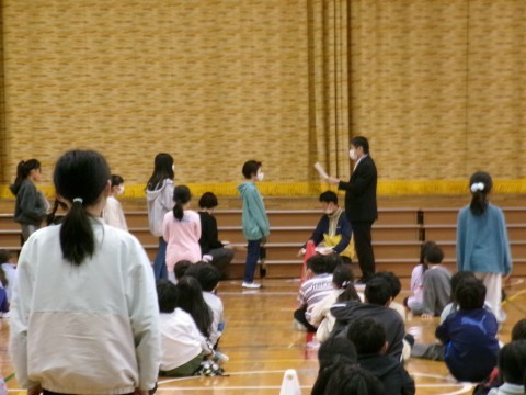 今日の全校朝礼は体育館で行いました。