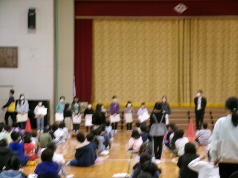 幼小中美術展,はとぶえコンクール,読書感想文コンクール,JA,SDGs,子ども絵画コンクールのそれぞれで入賞した児童への表彰式を行いました。