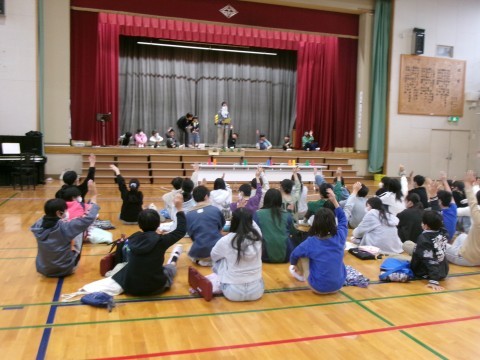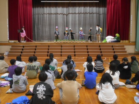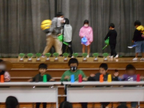 先日のチャレンジ学級発表会を6年生に見てもらいました。本番の時と違って,チャレンジ学級の参加者の人数が少なかったですが,しっかりと演技をすることができました。