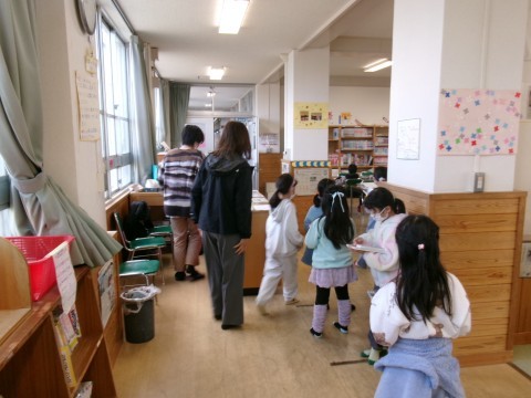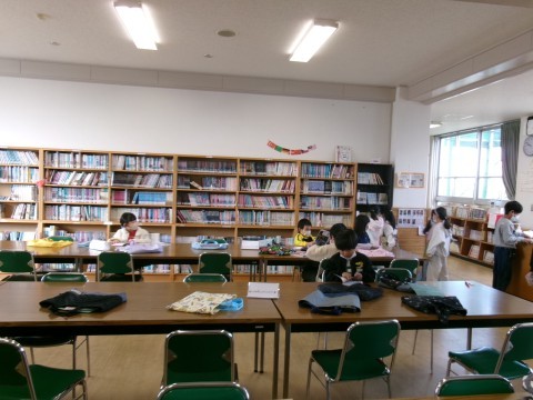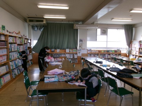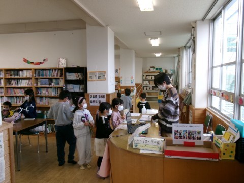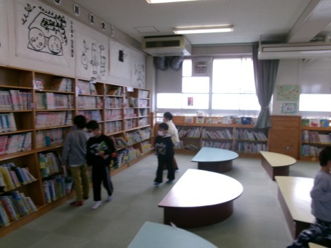 図書の時間の様子です。自分が気に入った本を読んだり借りたりしています。