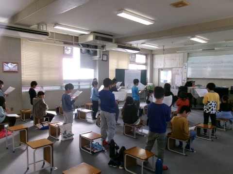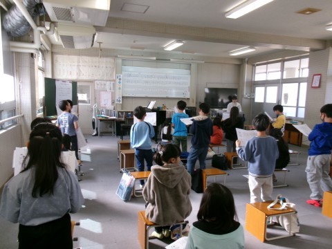 クリスマスが近くなってきたので,クリスマスに関連した歌の練習をしていました。「あわてんぼうのサンタクロース」という曲で1番から5番まで,自分がどこを歌うかを決めて,他の子たちは手拍子をするなど,楽しく歌の練習をしていました。