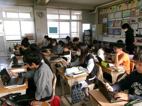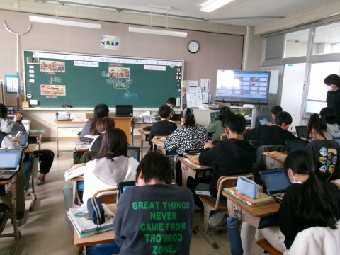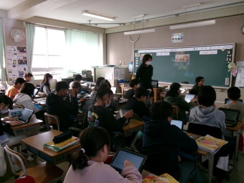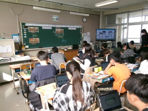 江戸時代と明治時代のイラストを比べて,違いについて意見を交流しました。その後,黒船が日本に来た目的と,江戸幕府の対応について調べています。