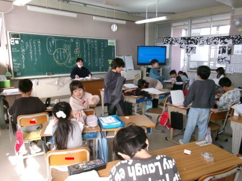 「みきのたからもの」という物語文の学習を始めています。「話の出来事を確かめよう」というめあてで,今日は「マヨネーズの容器のようなのりものは何か」ということを考えていました。