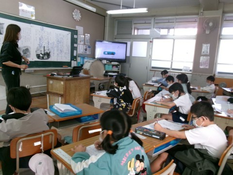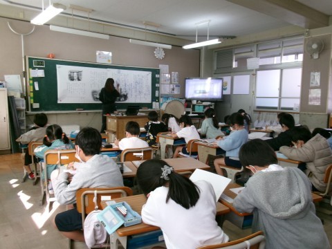 「たぬきの糸車」の学習をしていました。今日は,話の内容を場面に沿って,より具体的に考えていました。