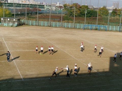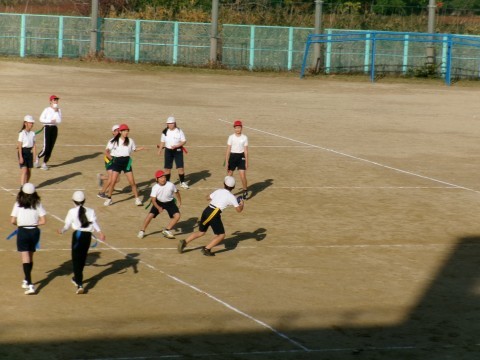 タグラグビーの練習をしていました。今日は少し肌寒い日でしたが,しっかり体を動かすことができました。