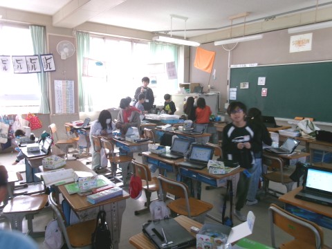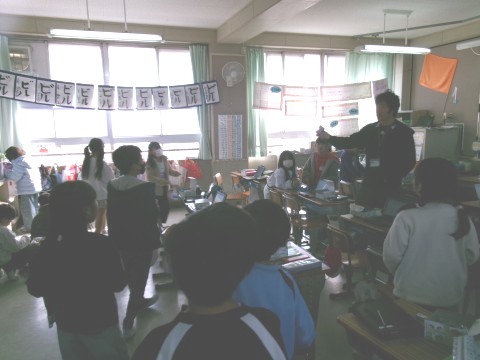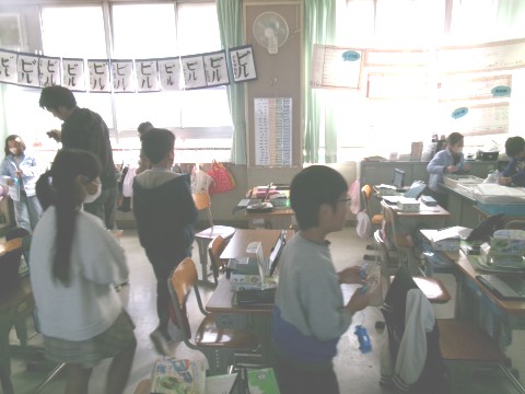 教材のテスター(電気を通すものだと豆電球が点灯するもの)を使って,教室の中のいろいろな物が電気を通すかどうかを試していました。