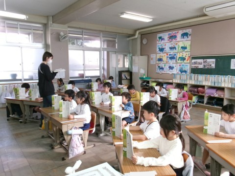 「たぬきの糸車」の音読をしていました。みんなきちんと教科書を持って,しっかり読んでいます!