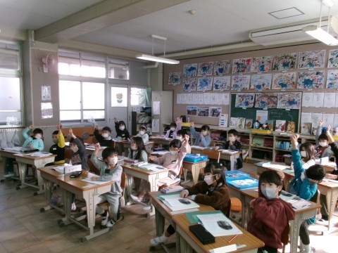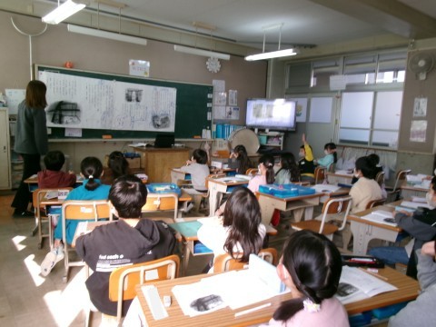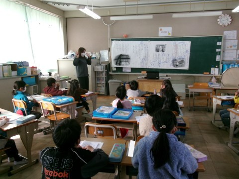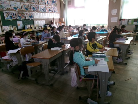 「たぬきの糸車」の本文を学習していました。今日は,おかみさんが久しぶりに山奥の小屋に戻った時の様子です。その時に,何に驚いたのかを具体的に考え,発表していました。