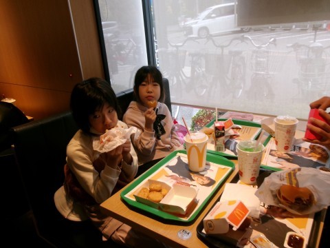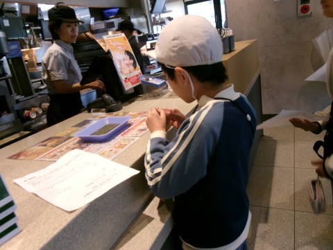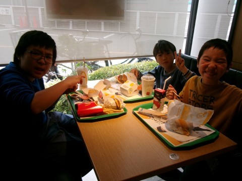 11/26(水)にチャレンジ学級の3年生~6年生で楽しみにしていた買い物学習に行きました。行った先は,マクドナルド。事前に自分で食べたいものを決めてから行きました。店員さんの質問に一つずつ丁寧に答えながら,全員が購入することができました。みんなで楽しくおしゃべりをしながら,おいしくいただきました。