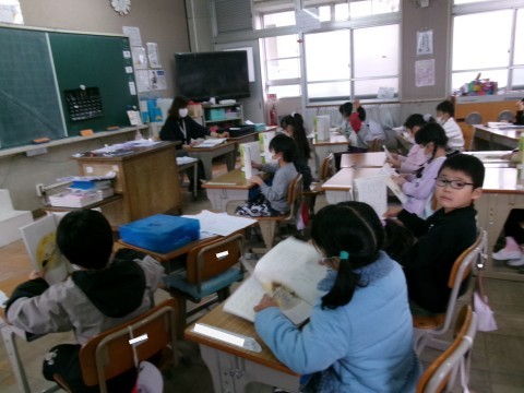 「たぬきの糸車」の音読のテストをしていました。みんな,自分なりに一生けん命読んでおり,前よりも上手に読めるようになった子もいました!