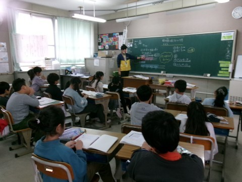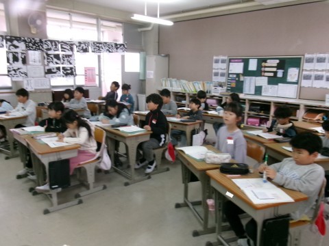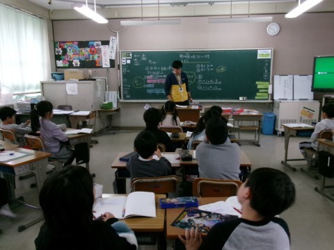 「倍の数」の学習をしていました。今日は「4倍の長さについて考えよう」というめあてで学習を進めていました。最初にテープ図で4倍の長さを鉛筆で塗った後,2cmや3cmの4倍の長さがいくらになるのかを考えていました。