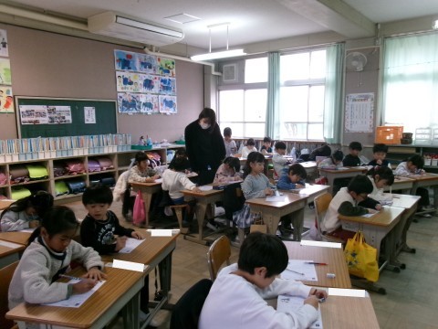「たぬきの糸車」の本文の学習の後,漢字のミニテストをしていました。みんな真剣に取り組んでいました!