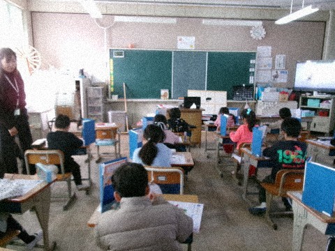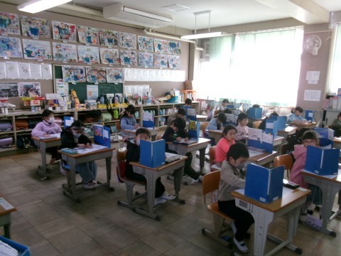 「たぬきの糸車」のテストをしていました。みんな一生懸命取り組んでいます。先生もしっかり応援していました!