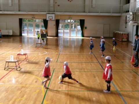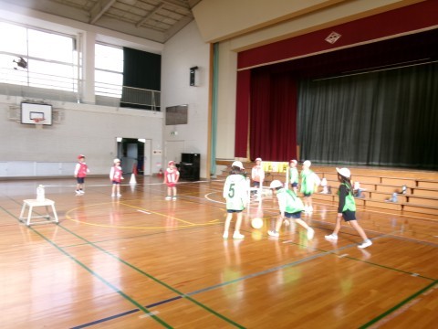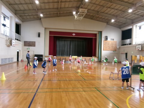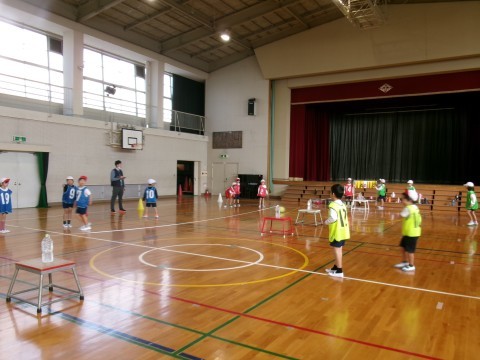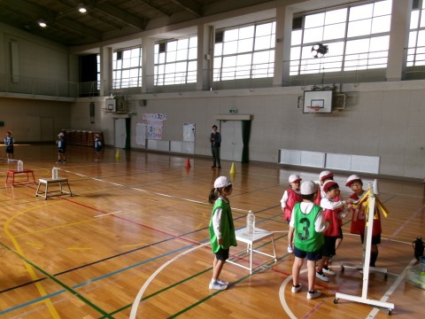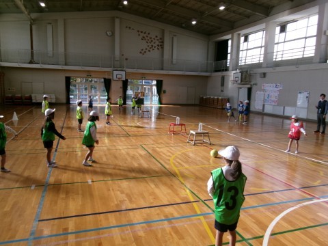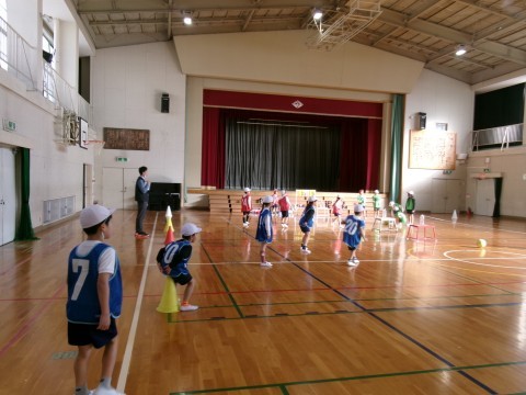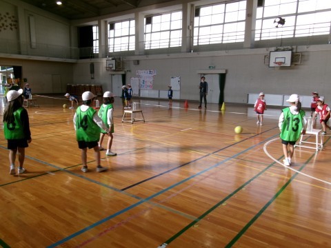 今日は,体育館で「ころころバレー」の試合をしていました。ルールにも動きにもだいぶ慣れてきて,ねらった所に上手に打てる(転がせる)ようになってきています!