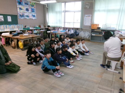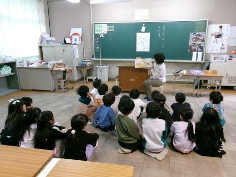 今日は,ほっこりさんの読み聞かせの日でした。各学年の1組に来ていただき,絵本を読み聞かせていただいています。
