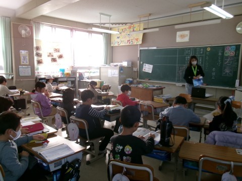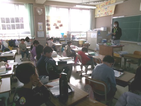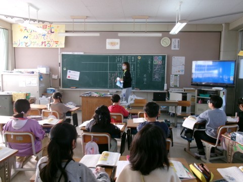 「三年とうげ」の学習をしていました。今日は,それぞれの場面の大まかな状況をつかんでいます。「三場面」では,トルトリが登場して場面が大きく変わっていったことを確認していました。