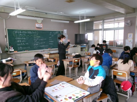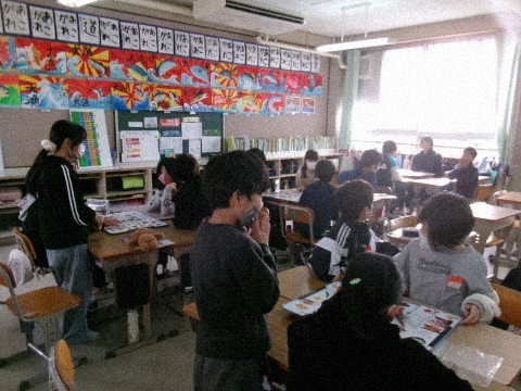 「食事の役割と栄養のバランスを考えよう」というめあてで学習を進めていました。自分たちで,いろんな食べ物を「赤・黄・緑」の3つに分類し,それがあっているか確認しています。それぞれの食べ物が「体をつくる」「エネルギーのもとになる」「体の調子を整える」のどれに当てはまるのかを考えることが,献立づくりにつながります。