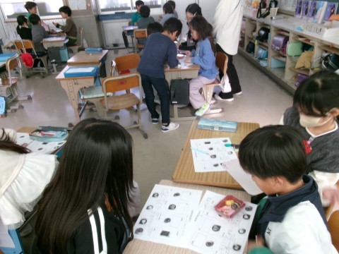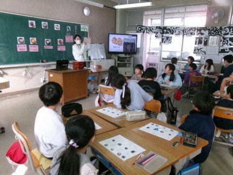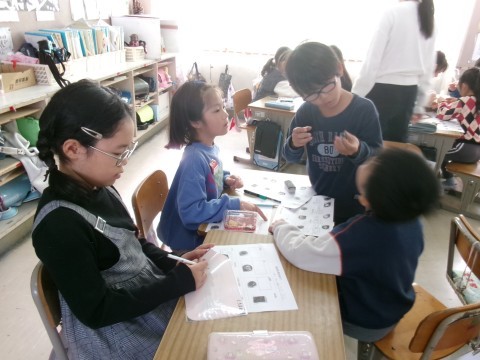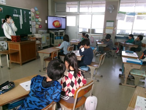 今日は,どちらのクラスも栄養教諭による食育の授業を行いました。内容は「おせち料理」についてです。なぜおせちにはいろいろな食材が入っているのか,そしてその意味について考えていきました。