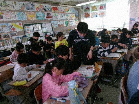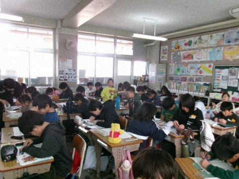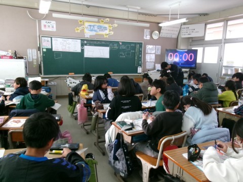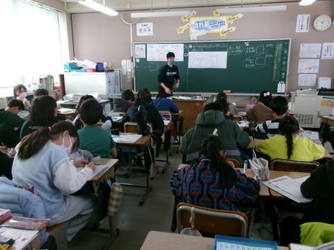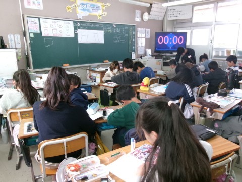 「平行四辺形の形の特徴を調べよう」というめあてで学習を進めていました。コンパスやものさし,分度器などを使って,辺の長さや角の大きさなどを調べています。