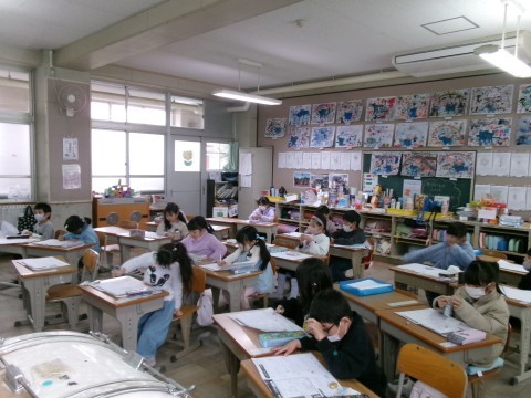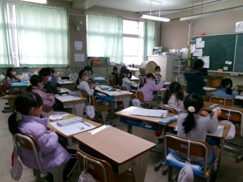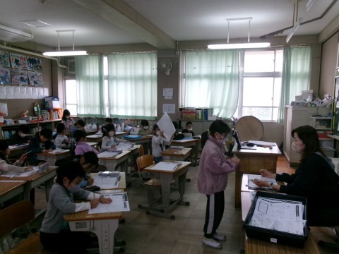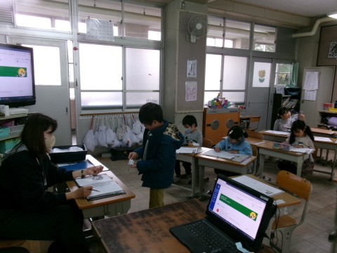 算数プリントで,たし算とひき算の復習をしていました。その間に担任が,たし算カードをどのくらいの速さで言えるかを一人ずつ確かめていました。