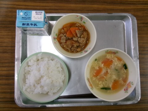 今日のメニューは,ごはん,トック,豚肉のプルコギでした。