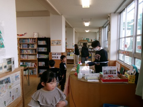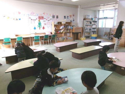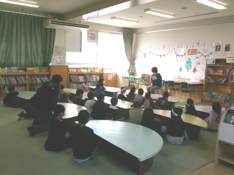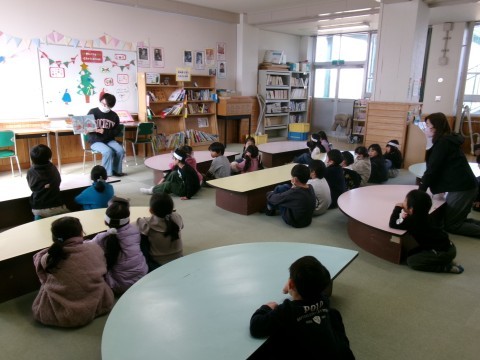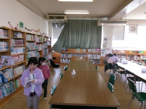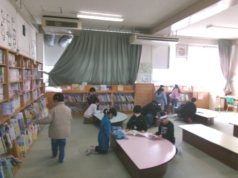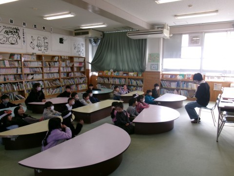 自分の借りたい本を選んだり,読みたい本を読んだりしていました。残った時間で,司書の先生に読み聞かせをしてもらっています。みんな一生懸命聞いていました。