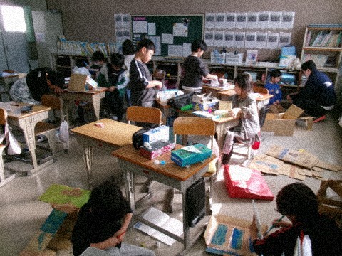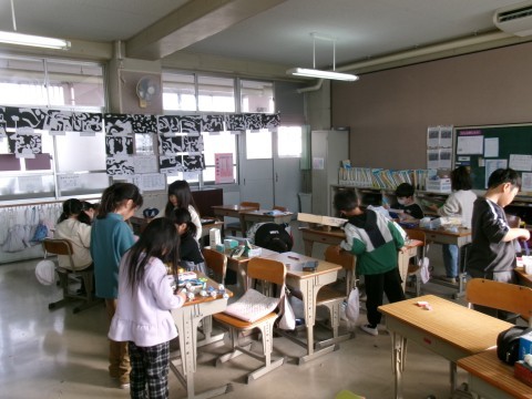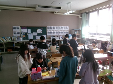 1年生を招待するために,「おもちゃランド」で使うおもちゃを作ったり,色を塗ったりしていました。1年生が喜んでくれるのを楽しみにしながら,一生懸命作っています。