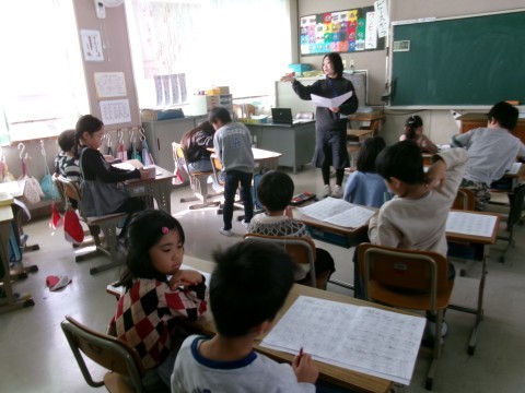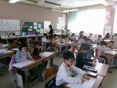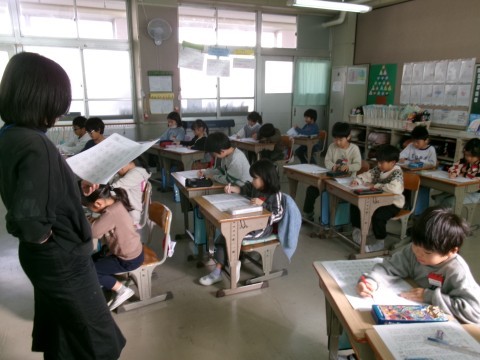 復習のプリントに取り組んでいました。全員が終わったところで,答え合わせをしていました。