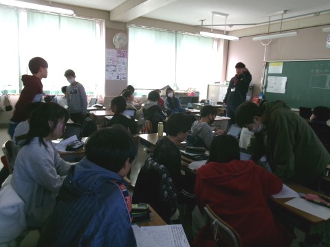 卒業文集の清書をしていました。パソコンで書いた下書きを,手書きで清書していきます。お互いに手伝いながらも,みんな真剣に取り組んでいました。