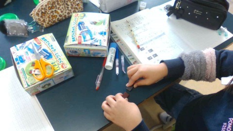 「じしゃくのふしぎ」の実験を行っています。今日はN極とS極のせいしつについて