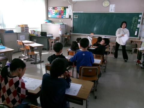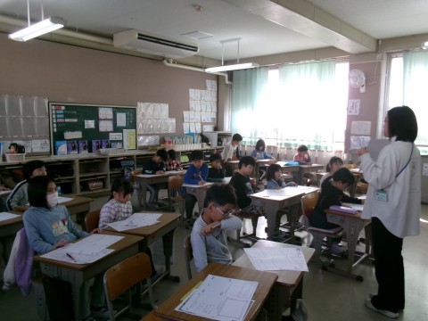 学年だよりの内容の説明をした後,生活科で調べてくる内容の説明をしていました。「生まれた時のようす」についてです。誕生日や身長・体重,家族の方々の思いなどをお家の方に聞いて,それを書いてくるものです。お忙しいとは思いますが,ご協力よろしくお願いします!