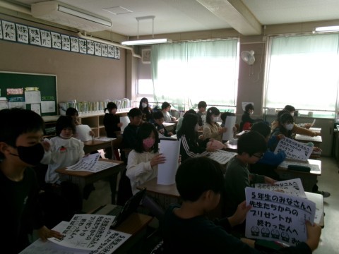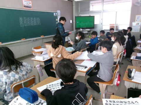 冬休みの宿題プリントを配っていました。問題(クリスマスプレゼントならぬ,プリゼント)だけでなく,答え合わせ用のプリント(お年玉)もあわせて配っています。