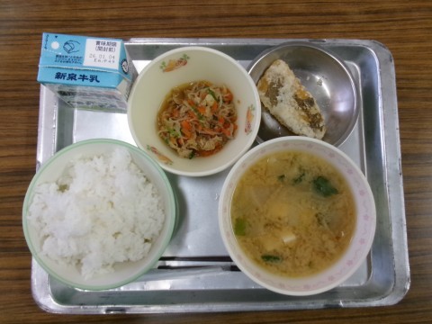 今日のメニューは,ごはん,みそ汁,かれいのから揚げ,糸こんにゃくのうま煮でした。
