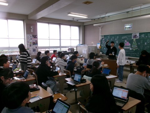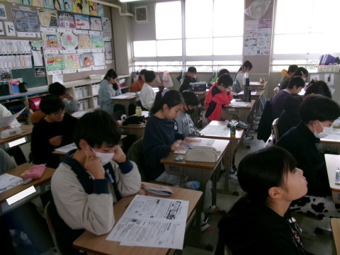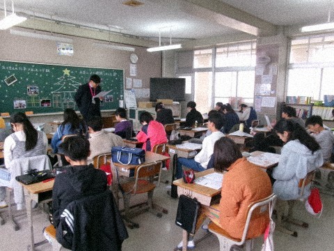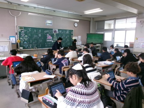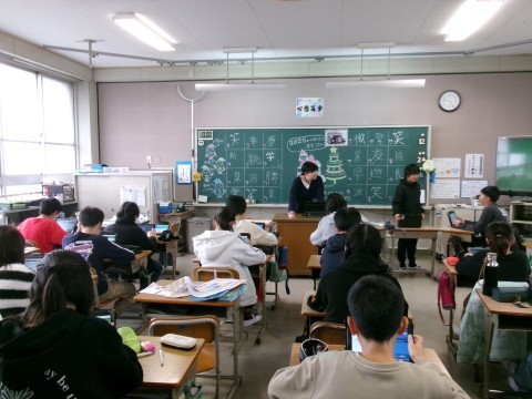 冬休みの生活について,学年通信等を見ながら説明していました。また,2組は説明後にタブレットで冬休みの宿題の確認をしていました。