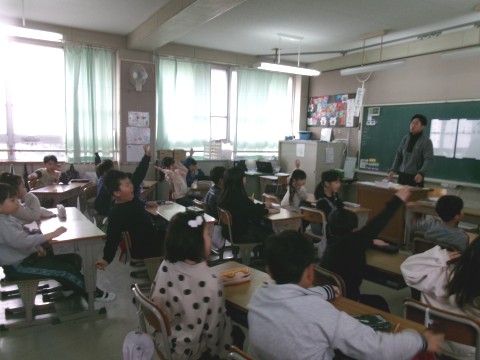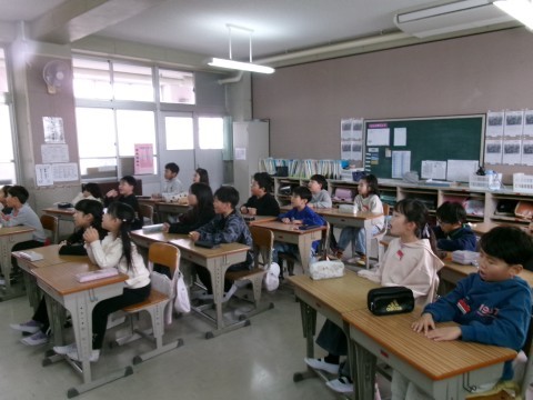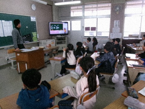 九九の復習をしていました。九九を歌で覚えられるような動画を見ながら,みんなで元気に九九を口ずさんでいました♪