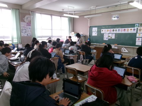 干支の動物を英語で何というか確かめていました。また,お正月のお祝いの言葉も教えてもらっていました。