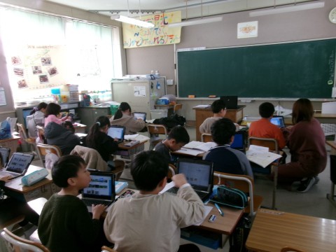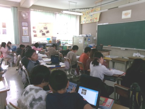八下西校区のお店や公園,または小学校の中で自分が好きな場所を紹介していきます。「わたしの町」という言葉から,イメージマップでどんどんイメージを膨らませていました。この後,写真も入れながら,好きな場所を紹介する文章を作っていきます。