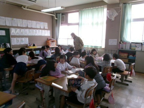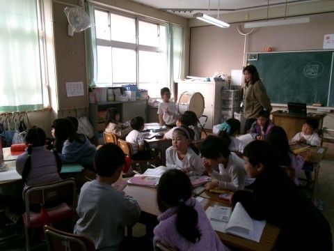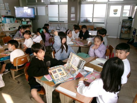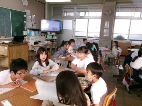 「くわしくきこう」という教材で,自分が好きな本の紹介を班の友だちにしていました。本の紹介を聞く側は,その内容について紹介した人に質問していきます。みんな真剣に取り組んでいました。