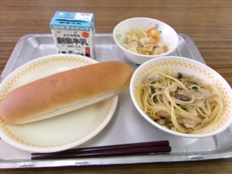 今日のメニューは,ミニコッペパン,和風スパゲティ,豆腐サラダでした。