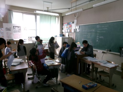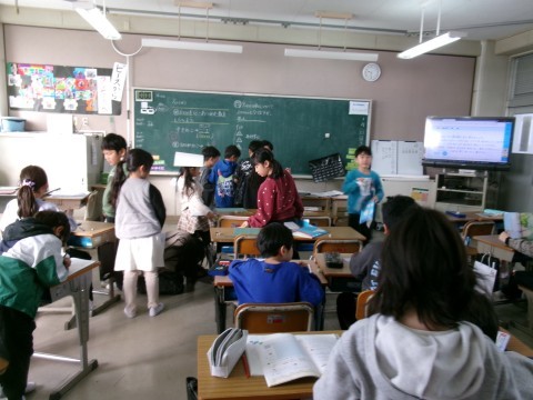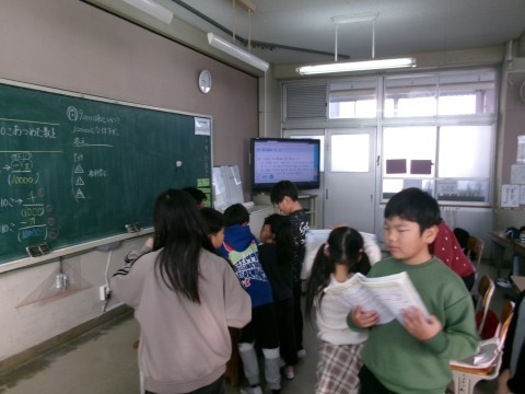 「1000を10こ集めた数をしらべよう」というめあてで学習を進めていました。大きな数の表し方や言い方の学習です。「9000はあといくつで10000になるか?」という問題を考えた後,教科書の問題に取り組みました。できたら先生にチェックしてもらっています。