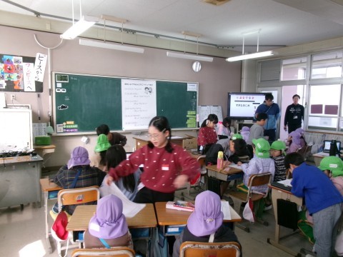 2年生は,近隣の園児との交流会を行いました。しっかりお兄さん,お姉さんになって,一緒に小学校のことを教えたり,遊んであげたりしていました。
