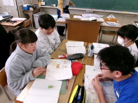 各班ごとに問題の解き方を考えて交流しています。