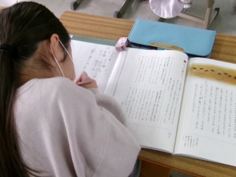 今日は,みんなで読み進めて内容を確かめ,ノートに書きました。